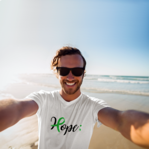 Hope; T-Shirt with green mental health awareness ribbon on a soft, lightweight tee.